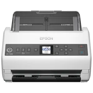 El Epson DS-730N es un escáner de documentos dúplex a color que ofrece velocidades de escaneo de hasta 40 páginas por minuto (ppm) o 80 imágenes por minuto (ipm), permitiendo escanear ambos lados de una hoja en una sola pasada.
